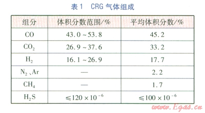 CRG是在COREX非高爐煉鐵反應時產(chǎn)生的氣體,屬于人工煤氣,沒計輸送壓力為0.2 MPa,標準狀態(tài)下的低熱值為8.231MJ/m3,其一氧化碳含量較高,氣體組成見表1。