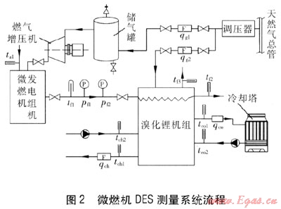國內(nèi)目前建設(shè)的微燃機分布式能源系統(tǒng)(Distributed Energy System,簡稱DES)示范工程一般均采用傳統(tǒng)的顯示儀表進行數(shù)據(jù)讀取,傳統(tǒng)顯示儀表功能單一,在進行運行參數(shù)采集時需多人相互協(xié)作完成,效率低且無法確保測量數(shù)據(jù)的實時性與準確性,大量數(shù)據(jù)分析與處理工作只能在采集結(jié)束后進行。通過構(gòu)建可實現(xiàn)微燃機DES運行參數(shù)自動采集和記錄的計算機輔助測試(Computer Aided Tesring,簡稱CAT)系統(tǒng),可快速完成大容量、多類型的數(shù)據(jù)采集、顯示和記錄,并進行分析與處理,以便動態(tài)掌握微燃機DES的工作進程并進行實時監(jiān)控。本文結(jié)合某微燃機DES工程,對微燃機DES的運行參數(shù)及動態(tài)性能指標的測量進行研究。