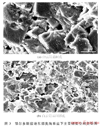 盆地東部下奧陶統(tǒng)馬家溝組發(fā)育大面積的厚層膏鹽巖。盡管奧陶系碳酸鹽巖烴源巖有機質(zhì)豐度較低。但是母質(zhì)類型好、熱演化程度高[4],況且賦存有大量瀝青、見有機包裹體[5~6],所以是有效的氣源巖。奧陶系鹽下主要為白云巖儲層,儲集空間以晶間孔、晶間溶孔、膏鹽晶??住⑨槧钊芸?、斑狀溶孔為主,并有成巖縫、構(gòu)造縫、巖溶縫伴生嘲。對鹽下烴源巖質(zhì)量、儲層發(fā)育特征和源儲配置關(guān)系的研究,是確定該區(qū)天然氣成藏潛力的重要依據(jù)。