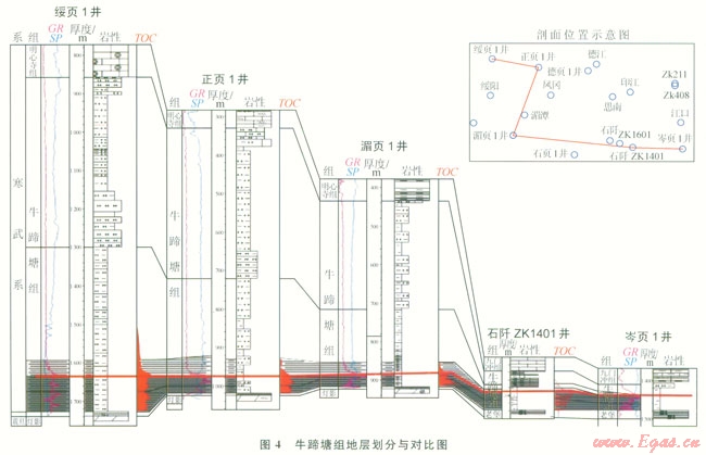 1)貴州省下寒武統(tǒng)牛蹄塘組主要分布于黔北、黔中及黔東 黔東南地區(qū),頁(yè)巖層段位于牛蹄塘組下部,巖性主要為含粉砂一粉砂質(zhì)、碳質(zhì)泥巖頁(yè)巖。