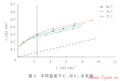 由式(3)得到25℃時(shí)的Cw69.8(W·cm)-1,遠(yuǎn)大于2.5(W·cm)-1的界限,再次證明臺(tái)南氣田的黏土附加導(dǎo)電作用是可以忽略的。同時(shí)也說明,該地區(qū)地層水礦化度較高,是造成電阻率絕對(duì)值低的主要原因之一。