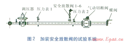 在調(diào)壓器和氣動切斷閥之間安裝6個安全放散并,測壓點選在安全放散閥下游的壓力表2處,用戶用氣設(shè)備切斷閥采用氣動切斷閥進行模擬。