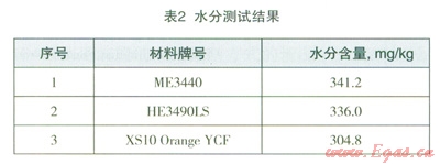 測試結(jié)果表明:3種材料聚乙烯燃?xì)夤懿木哂形?,并且水分含量相差不大,均大?span lang="EN-US">300mgkg