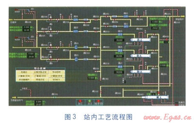 操作員工作站和工程師工作站通過以太網(wǎng)與SCADA服務器進行數(shù)據(jù)交換,將系統(tǒng)采集的數(shù)據(jù)以直觀、友好的圖形方式表現(xiàn)給用戶。顯示界面主要包括:管網(wǎng)圖動態(tài)實時顯示,重要站點工藝流程圖動態(tài)實時顯示,站內設備布置圖的動態(tài)顯示,實時及歷史趨勢圖顯示。
