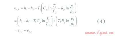 (4)式可以看出,穩(wěn)流物質(zhì)的用可分解為兩部分,即在某一壓力下系統(tǒng)與環(huán)境之間因熱不平衡而具有的溫度用ex,T和在環(huán)境溫度時系統(tǒng)與環(huán)境之間因力不平衡而具有的壓力用ex,T。分析表明天然氣在高中壓降壓過程中可回收的最大壓力用為
