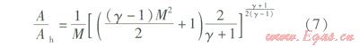 設喉口截面的面積為Ah,則M=1時,A=Ah,即: