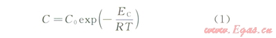 式中C為氣體的滲透系數(shù),(cm3·cm)(cm2·s·Pa);C0為前端因子;Ec表示滲透活化能;R為摩爾氣體常數(shù),8.31×10-3kJ(mol·K)。