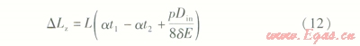軸向應(yīng)變乘以管段的計算長度,即得到管段由內(nèi)壓引起的伸長量DLy,即: