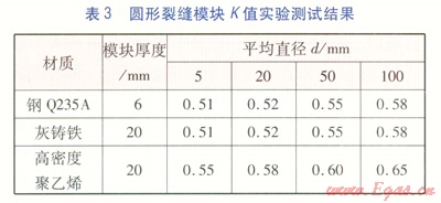 流量修正系數(shù)K的取值,主要取決于裂縫斷面形狀、管材。在實驗室需制作相關模型分類測試計算。建立不同裂縫形狀及大小、不同板材及厚度的模塊,通過對各種模塊的測試分析計算,得出流量修正系數(shù)K的取值范圍。