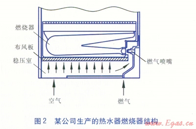 由風(fēng)機(jī)送入的空氣需要通過穩(wěn)壓室、布風(fēng)板進(jìn)行均勻布風(fēng),以保證燃?xì)庖豢諝饣旌衔镌诨鹋派险H紵?。燃燒器?nèi)空氣與燃?xì)獾木鶆蚧旌?,能夠避免燃?xì)馊紵煌耆?,繼而產(chǎn)生有毒有害物質(zhì)的現(xiàn)象,從而提高熱水器安全性能。