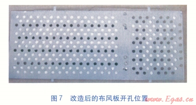 由測試結(jié)果可知,改造后的熱效率有所提高,平均提高了1.06%(絕對值)。煙氣中CO的體積分?jǐn)?shù)顯著下降,平均下降了30%。這說明燃?xì)馀c空氣的混合更加均勻,燃燒狀況得以改善,有效地降低了煙氣中CO的含量。布風(fēng)板規(guī)則的開孔位置對熱水器的熱效率沒有影響,降低了布風(fēng)板的設(shè)計難度。