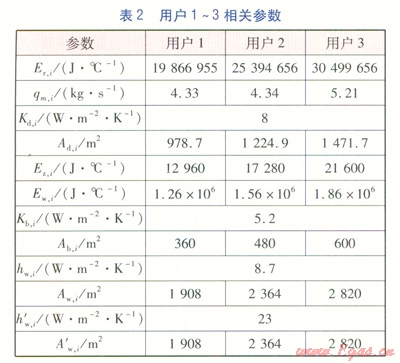 qw,1、qw,2、qw,3——用戶1~3外墻內(nèi)表面溫度,℃