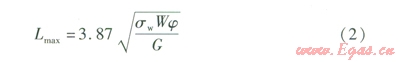 式中Lmax——活動(dòng)支架的允許間距,m