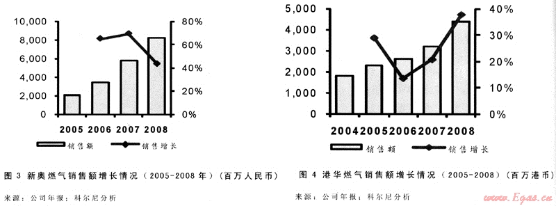 由于金融危機(jī)對燃?xì)獾裙檬聵I(yè)帶來的沖擊相對較小,總體來說,城市燃?xì)饨?jīng)營業(yè)務(wù)的基本面并未受影響,2008年城市燃?xì)庑袠I(yè)銷售仍保持了約30%的增長,城市燃?xì)庑袠I(yè)銷售收入由2007年的1137億元上漲到1483億元。主要原因在于: