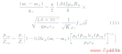 氣體具有強(qiáng)可壓縮性,其黏度(mg)、偏差因子(Zg)、體積系數(shù)(Bg)等都是關(guān)于壓力的強(qiáng)非線性函數(shù),如果直接對(duì)氣體滲流控制方程中的擴(kuò)散系數(shù)進(jìn)行強(qiáng)行近似必然會(huì)引起較大的誤差。使用擬時(shí)間函數(shù)(tg)能夠?qū)怏w滲流問(wèn)題等效轉(zhuǎn)化為液體滲流問(wèn)題,同時(shí)改進(jìn)了“強(qiáng)行近似擴(kuò)散系數(shù)(1/jmgcg)為常數(shù)”的假設(shè)條件,結(jié)果必然使得理論描述更接近于礦場(chǎng)實(shí)際情況,也方便液體研究領(lǐng)域內(nèi)成果的參考和借鑒。其中,擬時(shí)間定義為: