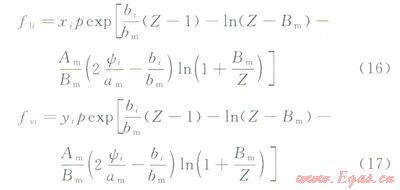 根據(jù)逸度公式和狀態(tài)方程(這里以SRK狀態(tài)方程為例)可得逸度方程,見本文參考文獻[14],即