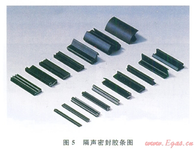 平臺(tái)生活樓房間布有400mm×560mm規(guī)格的氣阻型鋼質(zhì)窗,房間原有氣阻型窗玻璃膠條老化開裂,漏聲嚴(yán)重,其現(xiàn)場如圖4所示。對(duì)于此類狀況,可將房間舷窗用耐候隔聲膠條替換原有老化膠條。密封膠條的選用應(yīng)符合現(xiàn)場門窗的實(shí)際要求,具有阻燃、防火能力,如圖5所示。