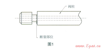 公司技術(shù)部門(mén)、施工管理部門(mén)會(huì)同施工方、設(shè)備廠(chǎng)家一起對(duì)調(diào)壓器進(jìn)行了拆解,經(jīng)過(guò)對(duì)兩臺(tái)調(diào)壓器進(jìn)行拆解,發(fā)現(xiàn)均為調(diào)壓器的閥桿斷裂,閥桿斷裂部位均在閥桿端部連接閥瓣的槽口處(見(jiàn)1)。
