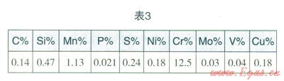 國(guó)外設(shè)備制造廠(chǎng)家對(duì)調(diào)壓器斷裂閥桿其它部位進(jìn)行了元素分析和力學(xué)測(cè)試,結(jié)果見(jiàn)表3