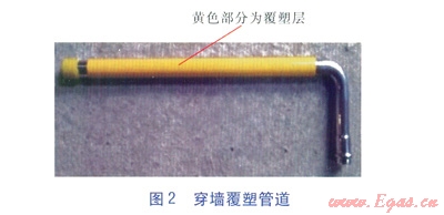 為避免填充材料對穿墻薄壁不銹鋼管的腐蝕,穿墻部分管道一般用防腐粘膠帶進行纏裹,但此工序耗時且質(zhì)量受施工工人人為因素影響較大。在試點工作中特委托產(chǎn)品供應商對穿墻部分直管段進行覆塑處理,并以成品管件形式提供(見圖2)。