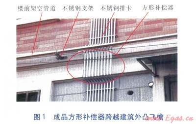 當燃氣管道需要進行溫度補償或跨越建筑物的沉降縫、伸縮縫、建筑外凸飛檐時,應采取補償措施。方形補償器是常見的自然補償措施之一,可由4個90°彎頭制作而成(安裝后共有8個機械連接點),但在實際應用時,由薄壁不銹鋼彎頭現(xiàn)場制作成的方形補償器很難做到安裝整齊,效果很不美觀且施工耗時較長。