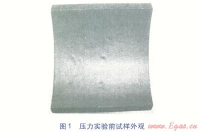 壓力實(shí)驗后試樣外觀見圖2。比較圖1、2可知,壓力實(shí)驗前后涂層顏色未出現(xiàn)明顯變化,涂層表面光滑平整,無起泡、針孔、裂紋等現(xiàn)象,也未腫脹及變軟。涂層與基材之間未脫落,附著情況良好。