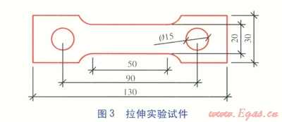 實(shí)驗?zāi)康氖菣z測拉伸實(shí)驗前后涂層的附著情況。拉伸實(shí)驗選用MTS810疲勞實(shí)驗機(jī),按照GB/T 228.1—2010《金屬材料拉伸實(shí)驗第1部分:室溫實(shí)驗方法》。將試樣(見圖3,圖中數(shù)值單位為mm)拉伸至屈服強(qiáng)度后卸載,觀察涂層表面形態(tài)變化以及涂層附著情況。分析拉伸實(shí)驗后的試樣可知,涂層表面無裂紋和剝離,涂層附著情況良好。