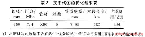 經(jīng)過計算,得到支干線①的優(yōu)化結(jié)果如表3所示。