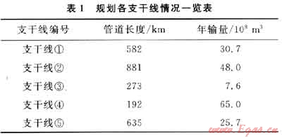擬對某干線管道進行擴建,規(guī)劃的各支干線情況如表1所示。以支干線①為例,對正交試驗設(shè)計方法的選擇過程進行說明。