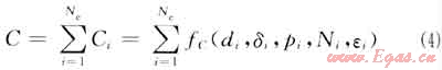 管道建設(shè)投資費用主要與管道的選型和管道的長度有關(guān),可表示為:
