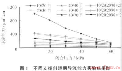 對20/40目壓裂支撐劑再進行不同粒徑細(xì)分,同時進行相關(guān)條件下的室內(nèi)物理性能評價,評價其裂縫導(dǎo)流能力變化是很重要的。將現(xiàn)用20/40目的支撐劑(陶粒、石英砂)按照新的物理分類進行不同方式的組合,結(jié)合蘇里格氣田壓裂所獲得的地層原始裂縫閉合應(yīng)力,通過室內(nèi)評價,優(yōu)化支撐裂縫導(dǎo)流能力,可提高氣井單井產(chǎn)量。