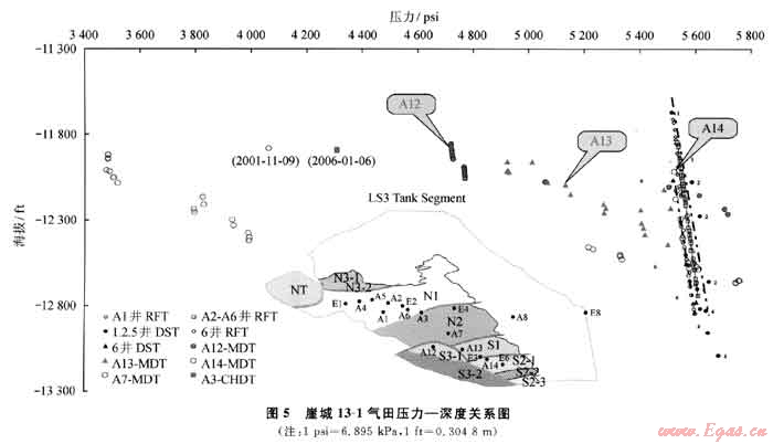 崖城13-1氣田有3套儲產(chǎn)層,分別為三亞組砂巖、陵二段砂巖和陵三段砂巖。
