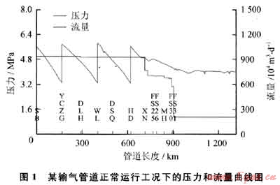 輸氣管道的運(yùn)行工況可以分為正常工況和異常工況。。正常工況包括了管道啟輸、啟停壓縮機(jī)組、壓縮機(jī)組切換、越站輸氣、分輸用戶的氣量調(diào)整和氣源進(jìn)氣量的調(diào)整等。異常工況包括了管道泄漏(爆管)、管道堵塞(冰堵)、干線截?cái)嚅y意外關(guān)斷、運(yùn)行機(jī)組故障停運(yùn)、通訊中斷和站場故障停運(yùn)等。