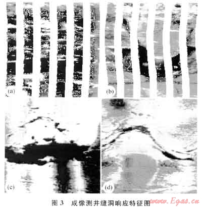 根據(jù)溶洞的分布特征及與孔、縫間的關(guān)系,可分為孔隙性溶洞和裂縫性溶洞??紫缎匀芏醇慈芏词侨芸妆贿M(jìn)一步溶蝕擴(kuò)大后形成(圖3-a),這些溶洞周圍常密集分布溶孔,孔、洞也常呈層狀分布,相互間連通性好;裂縫性溶洞即溶洞是構(gòu)造縫及少量成巖壓溶縫被局部溶蝕擴(kuò)大形成的,溶洞常沿裂縫呈串珠狀或長條狀分布,縫、洞連通性好(圖3-b、c、d)。以小型溶洞為主,占82%,中型溶洞占13%,大型溶洞占5%。在白云巖層段中、小型溶洞相對發(fā)育,而在石灰?guī)r層段大型溶洞發(fā)育。在EMI測井剖面中,大型溶洞的高度可達(dá)0.5m。在鉆井中常出現(xiàn)鉆時(shí)降低、放空、井漏顯示,如某井放空0.3m,EMI測井反映溶洞特征明顯(圖3-c)。在不同的構(gòu)造部位,溶}同的發(fā)育程度差異明顯,V3井區(qū)Zone1-Zone2的溶洞層段明顯比V1、V2井區(qū)發(fā)育,厚度為V1、V2井的1.5~2.0倍,表明從構(gòu)造的西南段向東北段溶蝕作用有減弱的趨勢。同時(shí),據(jù)巖石學(xué)特征、溶蝕孔洞內(nèi)幾乎沒有充填以及溶孔、溶洞與裂縫的密切關(guān)系,認(rèn)為溶蝕作用是在構(gòu)造裂縫形成之后發(fā)生的。
