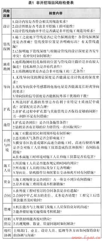 2 非開(kāi)挖項(xiàng)日的風(fēng)險(xiǎn)識(shí)別