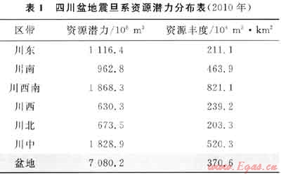 地區(qū),資源量合計(jì)2079.2×108m3,目前尚無勘探發(fā)現(xiàn),可作為盆地下古生界-震旦系的后備領(lǐng)域開展研究和準(zhǔn)備。川西和川北地區(qū)資源量最低(1303.8×108m3),因該地區(qū)震旦系埋藏太深,對(duì)其了解程度僅限于周邊少量露頭資料,對(duì)其含油氣地質(zhì)條件知道甚少,無法對(duì)這一區(qū)帶作出客觀評(píng)價(jià)。
