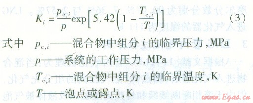 目前對(duì)烴類通常采用以下的經(jīng)驗(yàn)關(guān)聯(lián)式來估計(jì)Κi的近似值: