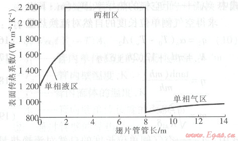 ①經(jīng)計(jì)算得翅片管的總長(zhǎng)度為13.45 m,與翅片管的實(shí)際長(zhǎng)度l3.316 m接近。其中單相液區(qū)最短,只占總長(zhǎng)度的14%,兩相區(qū)占45%,單相氣區(qū)占41%。