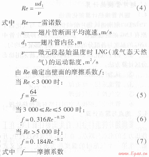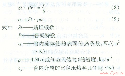 管內(nèi)LNG或氣態(tài)天然氣的對(duì)流換熱可以按照內(nèi)部強(qiáng)制對(duì)流換熱的實(shí)驗(yàn)準(zhǔn)則關(guān)聯(lián)式進(jìn)行計(jì)算。