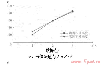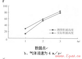 圖4不同氣體流速下實(shí)際積液高度與測(cè)得積液高度的對(duì)比圖