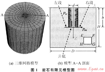 模型中設(shè)定巖石為彈塑性材料,具有比較短的硬化過程。各向同性巖石材料的力學(xué)參數(shù)有:楊氏彈性模量E=70GPa;泊松比為υ=0.25,密度為2000kg/m3。