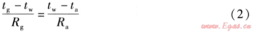 Rg——煙氣對管壁的傳熱熱阻,K/W