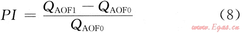 根據(jù)防砂前后的產(chǎn)能試井資料計(jì)算出的無阻流量可計(jì)算相應(yīng)的變化比,變化比的大小反應(yīng)防砂措施改善井底流動(dòng)條件的好壞。假設(shè)防砂前、后的氣井無阻流量為QAOF0和QAOF1,則變化比(PI)為: