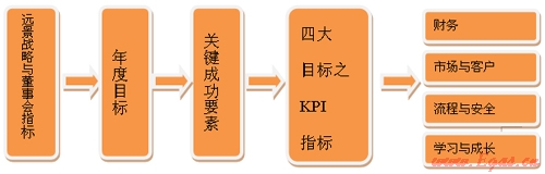 此外,國內(nèi)著名的港華燃氣集團將平衡計分卡的四個構(gòu)面改稱為“四大目標”,把推行平衡計分卡績效管理改稱為推行“四大目標”管理,使口徑變得直觀好記,更利于集團向各所屬公司推廣平衡計分卡績效管理。