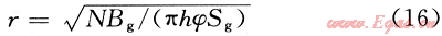 由容積法氣井可動(dòng)儲(chǔ)量計(jì)算公式:N=πr2hφSg/Bg,可得氣井泄流半徑計(jì)算公式:
