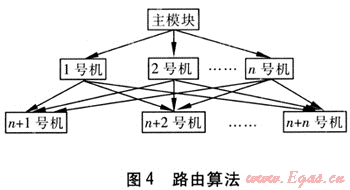 路由算法見圖4。主模塊開始工作后,只要沒有主站命令就開始根據(jù)自己儲(chǔ)存的從模塊的檔案逐個(gè)去搜索下面的加油機(jī)(即發(fā)一幀帶有目的地址的數(shù)據(jù)幀,以下簡(jiǎn)稱握手幀)。從模塊收到握手幀后,把握手幀中的地址和自己的地址比較,地址相同則返回一個(gè)握手應(yīng)答幀,完成一次握手。例如圖4中主模塊和1號(hào)機(jī)、2號(hào)機(jī)、n號(hào)機(jī)等握手。對(duì)于直接通信不到的從模塊,如圖4中的n+1號(hào)機(jī)等,則通過1號(hào)機(jī)、2號(hào)機(jī)、n號(hào)機(jī)等能直接通信到的從模塊發(fā)中繼幀和它們握手。主模塊的MCU會(huì)把這個(gè)路由搜索結(jié)果生成一個(gè)鏈表暫時(shí)存在SRAM內(nèi),然后繼續(xù)學(xué)習(xí)。每1h把這個(gè)鏈表儲(chǔ)存到EEPROM一次。這是因?yàn)锳Tmega64L內(nèi)的EEPROM只有10×104次的擦寫次數(shù),如果每次都寫到EEPROM里,那么用不了多長(zhǎng)時(shí)間EEPROM就會(huì)被寫壞。電力線的通信狀況雖然有變化,但也不是時(shí)時(shí)刻刻都在變。所以,也沒必要時(shí)時(shí)刻刻都放到EEPROM。通過這樣設(shè)計(jì),EEPROM的壽命可延長(zhǎng)至10年以上。為提高通信可靠性,一般會(huì)給從模塊多保存幾條路由路徑,以備冗余[2]。