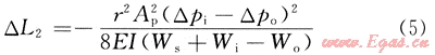 當(dāng)測(cè)試管柱內(nèi)流體流動(dòng)而環(huán)形空間的流體不流動(dòng)一時(shí),其管柱長(zhǎng)度變化△L3為: