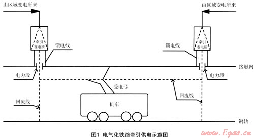 電氣化鐵路牽引供電電流種類可分為3種電流制:直流制、低頻單相交流制和工頻單相交流制。目前,我國電氣化鐵路均為采用工頻單卡H25kV交流制。這種電流制式不需要在牽引變電所設(shè)置整流和變頻設(shè)備,能直接從具有強(qiáng)大容量的電力系統(tǒng)取得電能,并以較高的電壓向電力機(jī)車供電,使?fàn)恳冸娝墓╇娫O(shè)備簡單化,牽引變電所間距離增大,接觸導(dǎo)線截面縮小,減少了電能的損失,降低了建設(shè)投資和運(yùn)營費(fèi)用[1]。