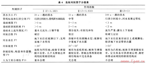 表5 跨越管橋洪水危險度判別表