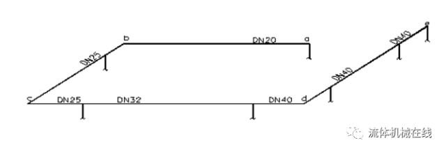 3、例題[已知] 如圖1所示,某民用建筑95/70℃熱媒供熱管道a-b段長(zhǎng)度為32m,b-c段長(zhǎng)度為24m,c-d段長(zhǎng)度為63m,d-e段長(zhǎng)度為48m,管徑如圖所示。